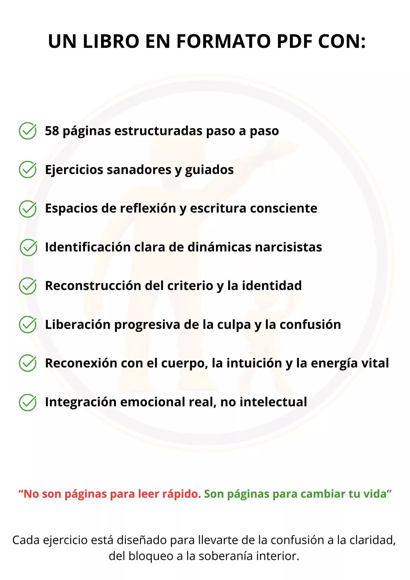 Este no es un contenido superficial. Es un proceso profundo condensado en 58 páginas de valor incalculable, creadas para acompañarte en una sanación real y sostenida.